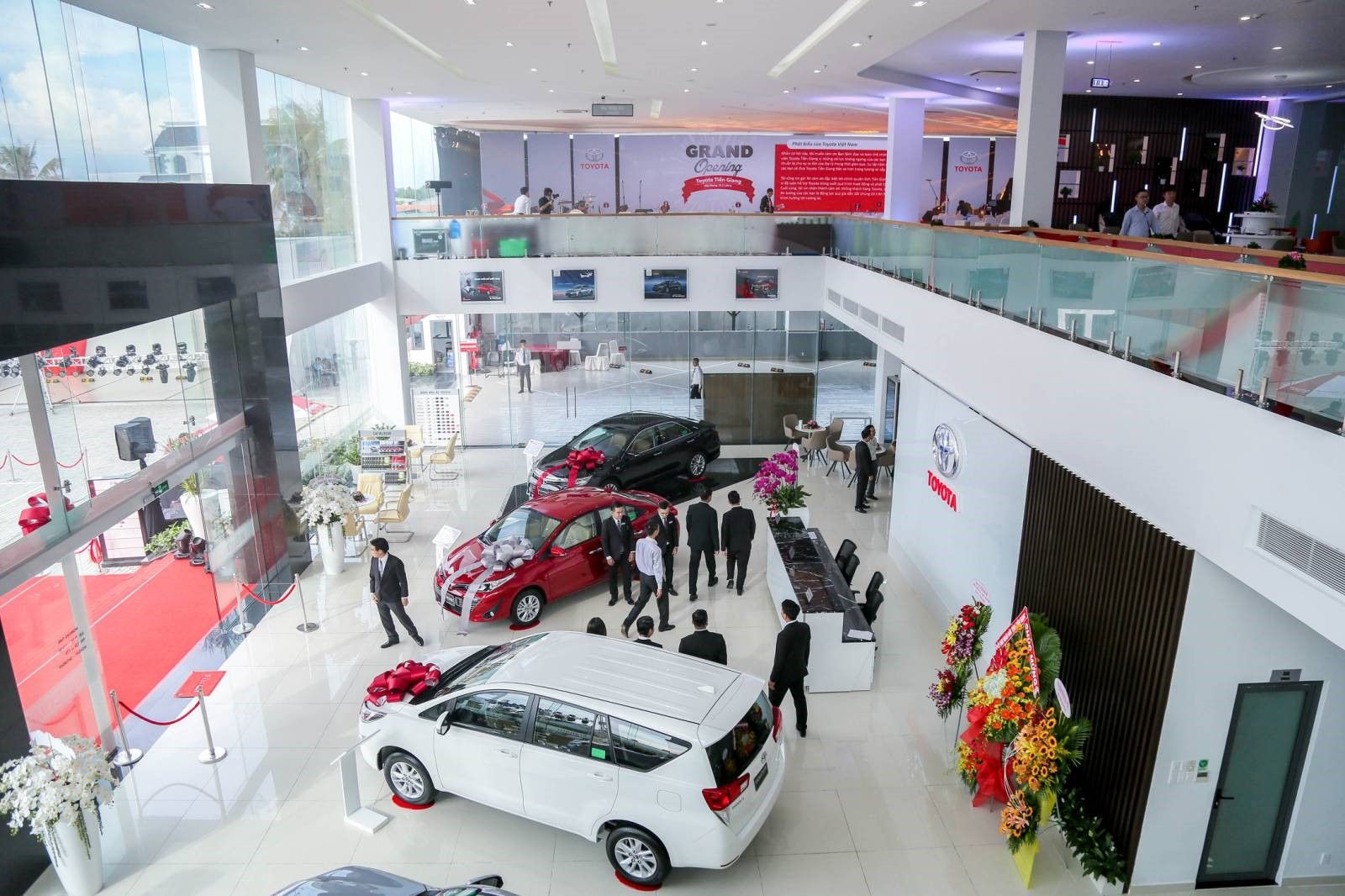 Sảnh showroom trưng bày với 2 tầng, trưng bày nhiều dòng xe