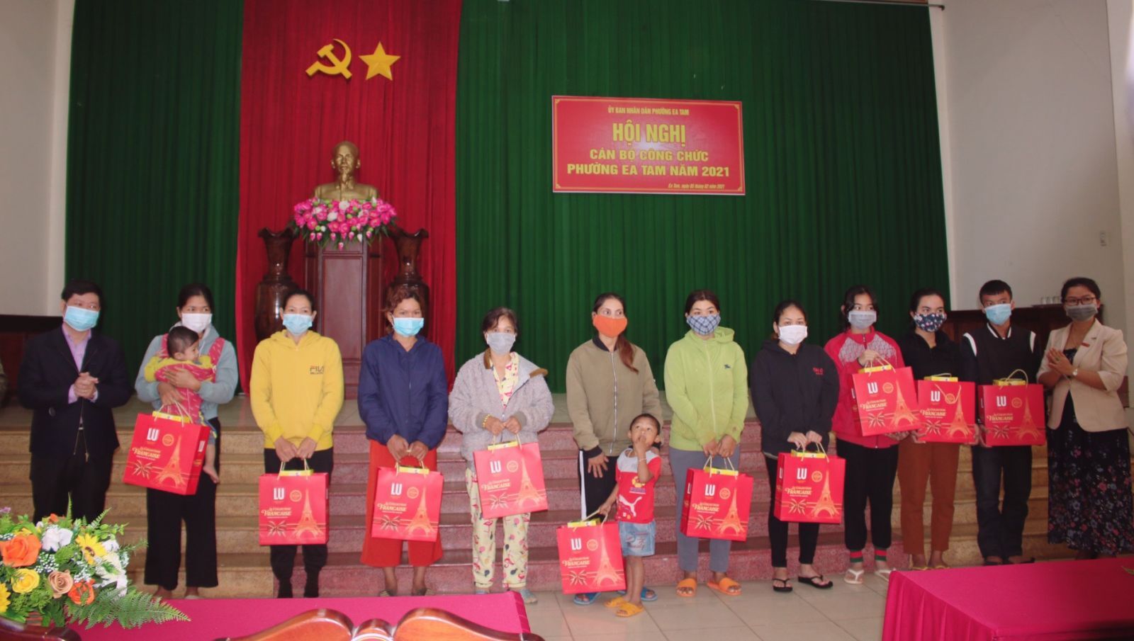 Trên tinh thần tương thân tương ái, chia sẻ với bà con trong dịp Tết cổ truyền dân tộc, UBND TP. Buôn Ma Thuột đã phối hợp với Tạp chí Việt Nam Hội nhập - Cơ quan đại diện Nam Trung Bộ - Tây Nguyên hỗ trợ các hộ gia đình nghèo có hoàn cảnh đặc biệt khó khăn trên địa bàn thành phố. Theo đó, đoàn đã đến thăm hỏi, tặng quà cho 50 hộ nghèo tại xã Ea Tu, phường Ea Tam, xã Ea Kao (TP. Buôn Ma Thuột).