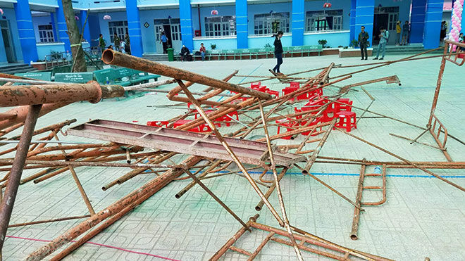 VNHN – Sáng nay, trong buổi Lễ Hiến chương nhà giáo Việt Nam 20/11 tại trường Tiểu học Huỳnh Văn Bánh (xã Vĩnh Lộc A, huyện Bình Chánh, TP. HCM) thì bất ngờ giàn giáo dùng để dựng sân khấu đổ sập khiến nhiều học sinh bị thương.