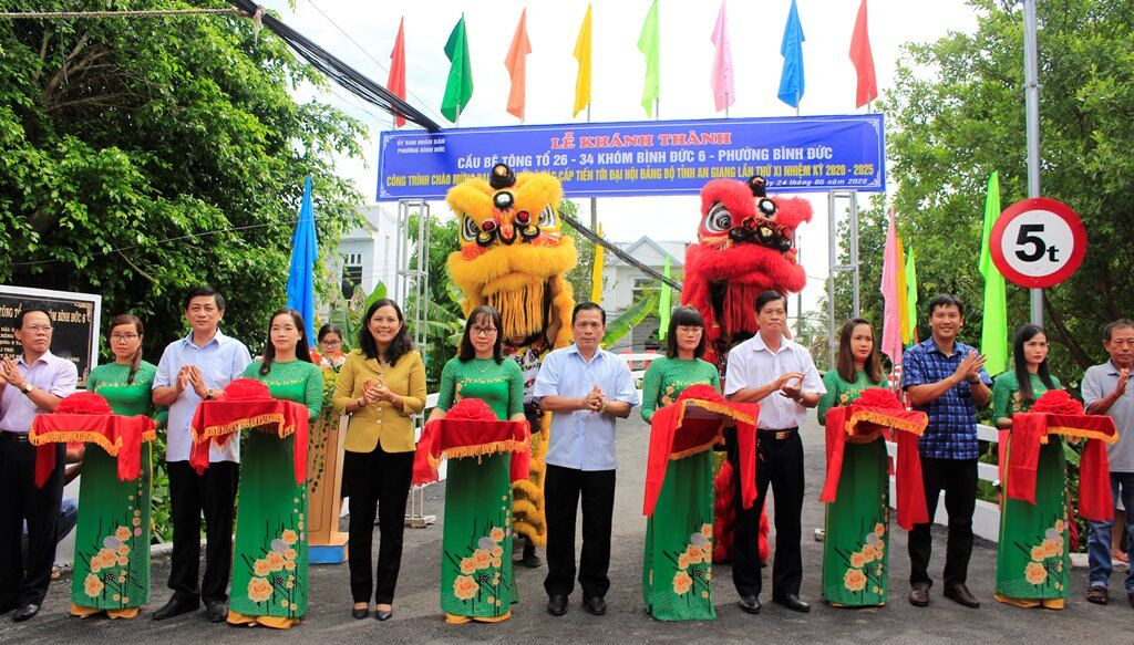 Đồng chí Phạm Thành Thái (đứng giữa) dự Lễ khánh thành cầu bê tông tổ 26 – 34, khóm Bình Đức 6. (Nguồn Internet)