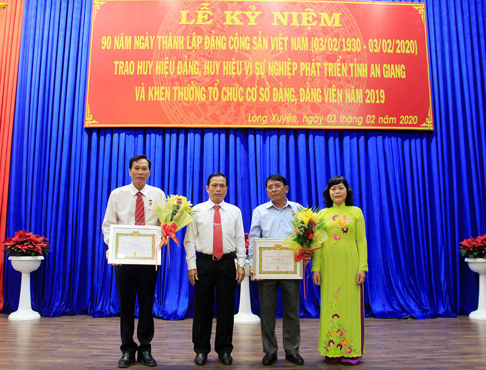 Đồng chí Phạm Thành Thái (đứng giữa) trao bằng khen kỷ niệm 90 năm Ngày thành lập Đảng Cộng Sản Việt Nam. (Nguồn Internet)