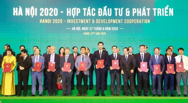 VNHN - Ngày 27/06, trong khuôn khổ Hội nghị “Hà Nội 2020 – Hợp tác Đầu tư và Phát triển”, UBND thành phố Hà Nội đã cùng Tập đoàn Tân Hoàng Minh ký kết Biên bản ghi nhớ cam kết đầu tư cho 02 dự án quy mô lớn tại huyện Đông Anh và Chương Mỹ, Hà Nội.