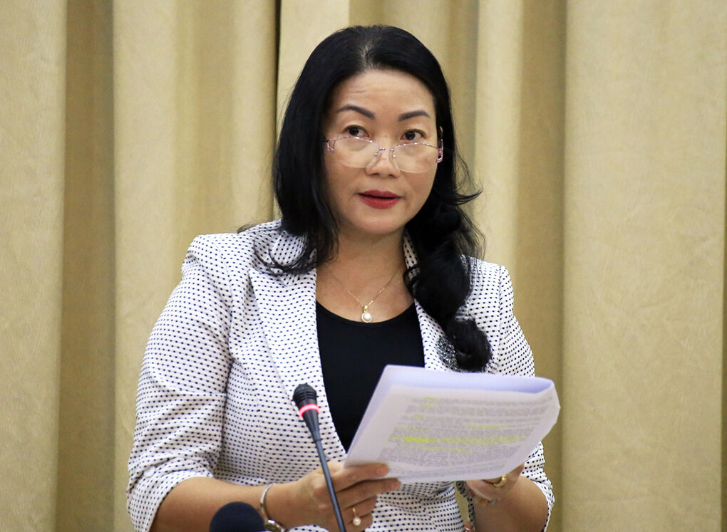 Phó giám đốc Sở Tài nguyên và Môi trường Nguyễn Thị Thanh Mỹ tại cuộc họp. Ảnh: Hữu Công.