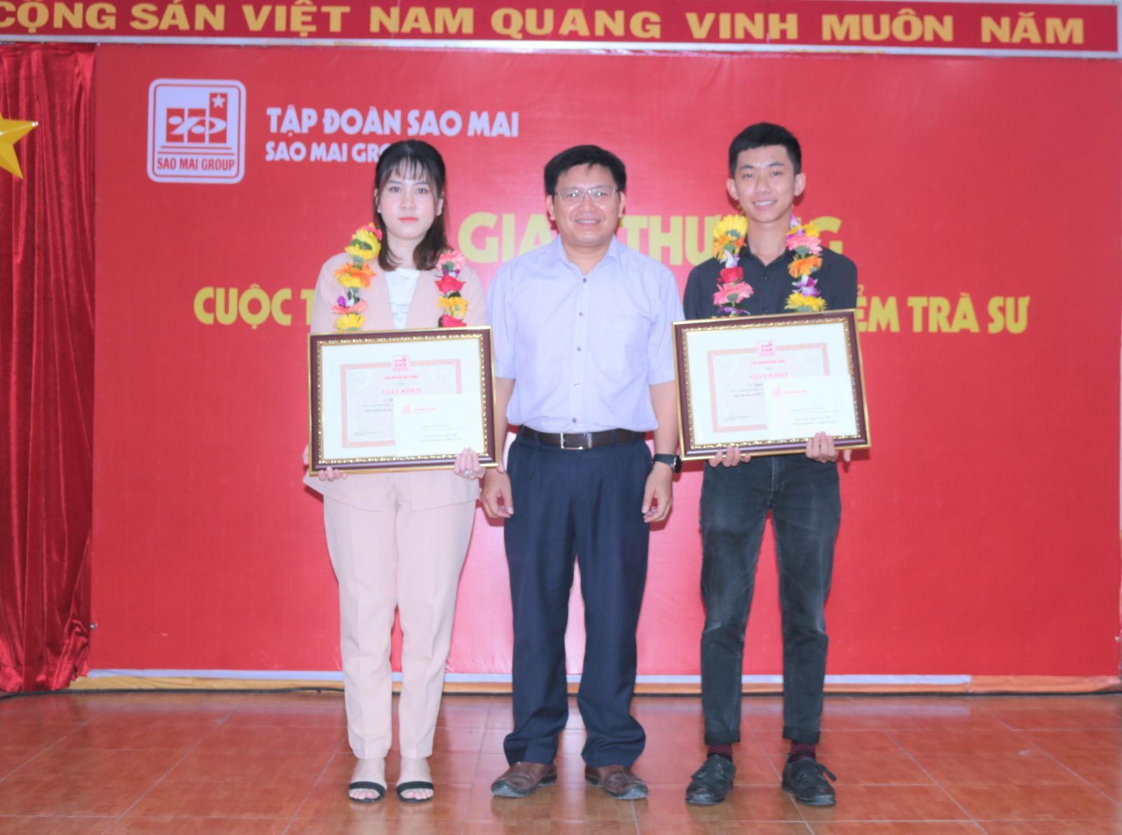 Ông Trương Vĩnh Thành - Phó TGĐ Tập đoàn Sao Mai, trao giải nhì và ba cho 2 kiến trúc sư xuất sắc trong cuộc thi.