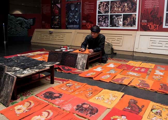 Hàng trăm năm trước, những bức tranh dân gian “thần kê”, cặp lợn no tròn, tiến tài - tiến lộc… được in trên nền giấy đỏ rực rỡ sắc màu đã theo những người bán hàng ra chợ Tết, truyền hơi xuân cho các làng quê.