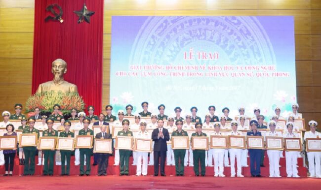 Chủ tịch nước Trần Đại Quang nhấn mạnh hai cụm công trình trong lĩnh vực quân sự, quốc phòng của 52 đồng tác giả được trao Giải thưởng Hồ Chí Minh lần này có giá trị đặc biệt to lớn, là kết quả của sự dày công nghiên cứu, cống hiến trí tuệ và tài năng của các nhà khoa học quân sự.