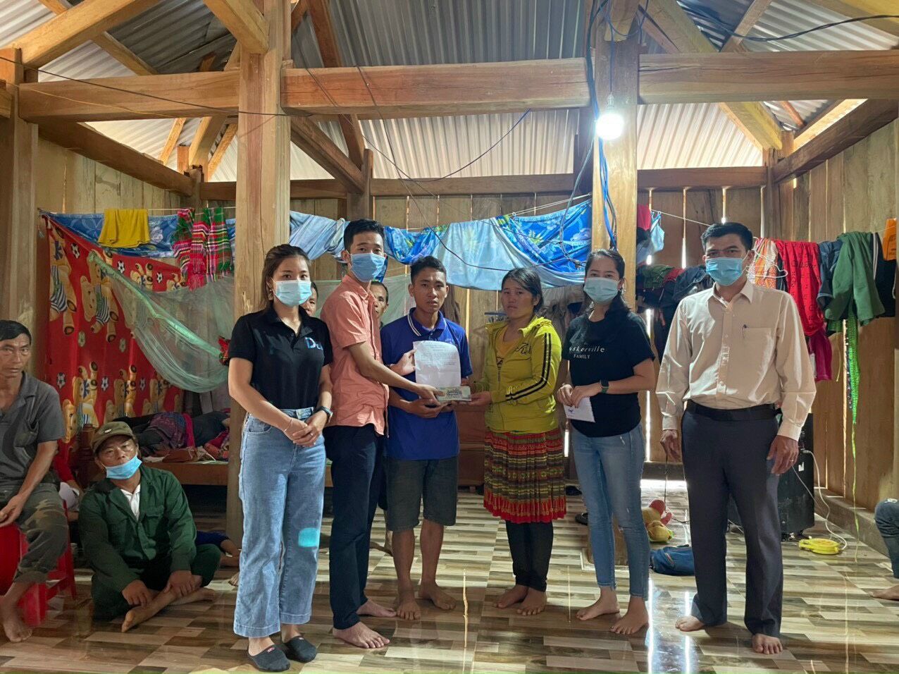 Trao hơn 50 triệu đồng do các mạnh thường quân quyên góp để hỗ trợ gia đình có 2 cháu nhỏ chết đuối tại hồ ở thôn Ea Bar, xã Cư Pui, huyện Krông Bông.