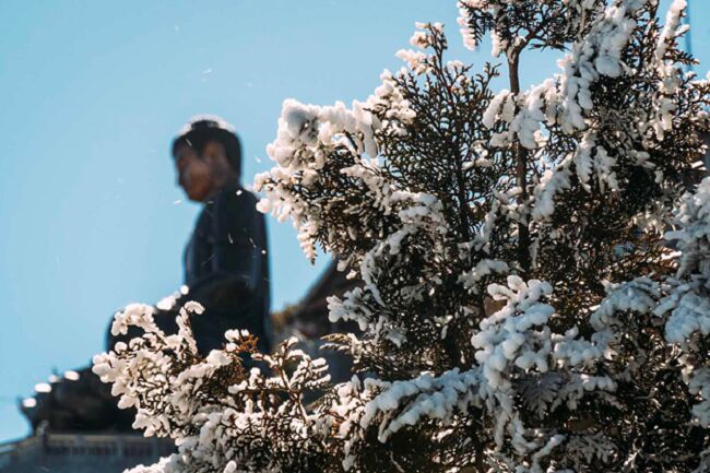 Trong sáng sớm ngày khai hội, băng giá đã xuất hiện trên đỉnh Fansipan đón chào lễ hội Khèn hoa - Hội xuân mở cổng trời.