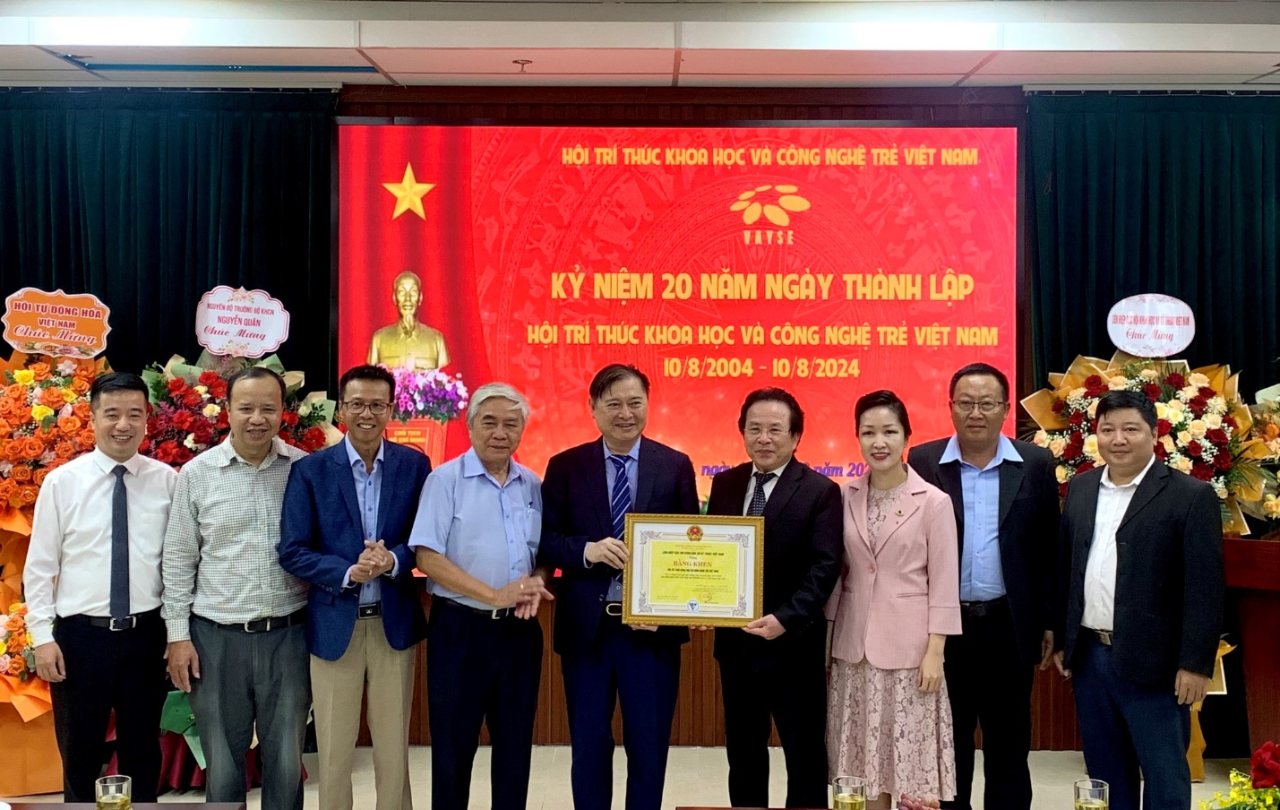 Chủ tịch Liên hiệp các Hội Khoa học và Kỹ thuật Việt Nam - TSKH.Phan Xuân Dũng trao tặng Bằng khen cho Hội Trí thức KH&CN trẻ Việt Nam nhân kỉ niệm 20 năm ngày thành lập Hội (8/2024)