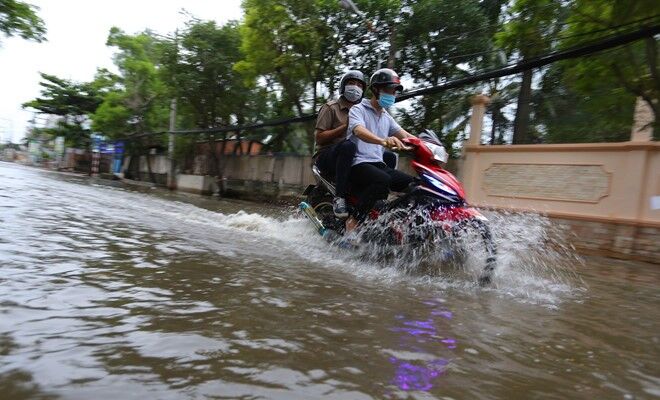 Triều cường trên đường Nguyễn Văn Hưởng sáng nay. Ảnh: Zing.vn.
