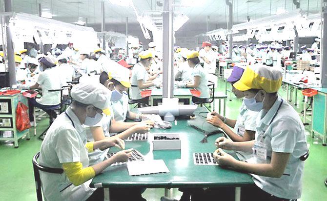 Công nhân làm việc tại một xưởng vi mạch điện tử. Ảnh: Internet