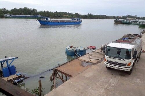 Xe bồn hút hóa chất từ chiếc tàu bị chìm