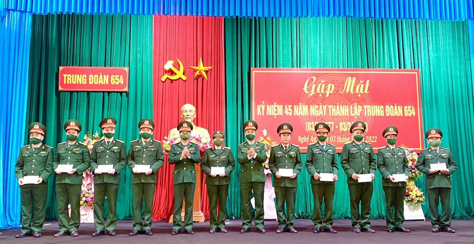 Suốt chặng đường 45 năm qua, được sự quan tâm, lãnh đạo, chỉ đạo chặt chẽ, thường xuyên của Thường vụ Đảng uỷ, Bộ Tư lệnh Quân khu, Thường vụ Đảng uỷ, chỉ huy Cục Hậu cần, các thế hệ cán bộ, chiến sĩ, nhân viên trung đoàn 654 luôn đoàn kết một lòng, nỗ lực khắc phục khó khăn hoàn thành xuất sắc mọi nhiệm vụ được giao. Với thành tích trong phục vụ chiến đấu công tác, các đơn vị tiền thân của trung đoàn đã có 3 tập thể và 3 cá nhân được Đảng và Nhà nước Tuyên dương anh hùng lực lượng vũ trang nhân dân, nhiều tập thể cá nhân được tặng thưởng Huân, Huy chương các loại. Trung Đoàn được tặng thưởng 01 Huân chương chiến công hạng nhì, 01 Huân chương Quân công hạng 3, một huân chương bảo vệ Tổ quốc hạng ba, 01 huân chương bảo vệ Tổ quốc hạng Nhì, được Bộ và Quân khu tặng nhiều bằng khen, giấy khen khen và nhiều năm đạt danh hiệu Đơn vị Quyết thắng. Vinh dự tự hào về truyền thống 45 năm xây dựng, phục vụ chiến đấu và trưởng thành; cán bộ, chiến sĩ Trung đoàn 654, tiếp tục phấn đấu học tập rèn luyện nâng cao bản lĩnh chính trị, trình độ chuyên môn nghiệp vụ, hoàn thành xuất sắc nhiệm vụ mà Đảng, Nhà nước Quân đội, Quân khu giao phó, xứng danh Bộ đội Cụ Hồ của người lính vận tải trên quê hương Bác Hồ kính yêu. Cũng tại buổi gặp mặt Hội đồng Thi đua khen thưởng Trung đoàn đã tiến hành Tổng kết và trao giải đợt thi đua cao điểm chào mừng 45 năm ngày thành lập và công bố kết quả Cuộc thi tìm hiểu truyền thống 45 năm truyền thống đơn vị.