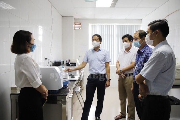 Tại buổi làm việc, Chủ tịch UBND tỉnh Trịnh Xuân Trường đã đi thăm một số khoa chức năng và thị sát các trang thiết bị y tế phục vụ công tác phòng, chống dịch và xét nghiệm SARS-CoV-2 tại Khoa xét nghiệm, thăm dò chức năng, chẩn đoản hình ảnh của Trung tâm.