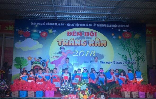 VNHNO – Tối qua 19/9, chương trình Đêm hội trăng rằm đã được Thành Đoàn, Hội Chữ thập đỏ Hà Nội phối hợp với Ủy ban Nhân dân huyện Chương Mỹ tổ chức, mang Trung Thu đến sớm với các em nhỏ xã Nam Phương Tiến - địa phương bị ảnh hưởng nặng nề nhất trong đợt ngập lụt cuối tháng Bảy, đầu tháng Tám vừa qua.