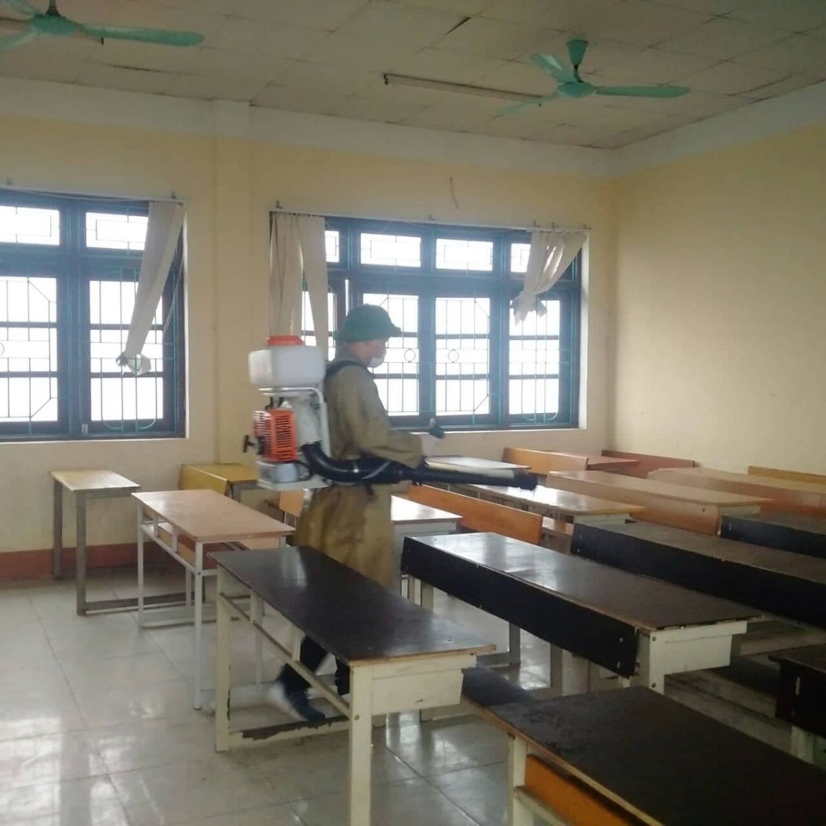 Cũng trong ngày 13-14/2/2020, toàn thể CBGV tổ chức tổng vệ sinh khu làm việc, phòng học, phun thuốc khử trùng chuẩn bị môi trường an toàn cho HSSV quay trở lại học tập sau kỳ nghỉ. Khu vực bếp ăn của Nhà trường được vệ sinh sạch sẽ, phun thuốc khử trùng, đảm bảo vệ sinh an toàn thực phẩm, hướng dẫn vệ sinh tay trước và sau khi ăn đối với HSSV và cán bộ, giáo viên Nhà trường.