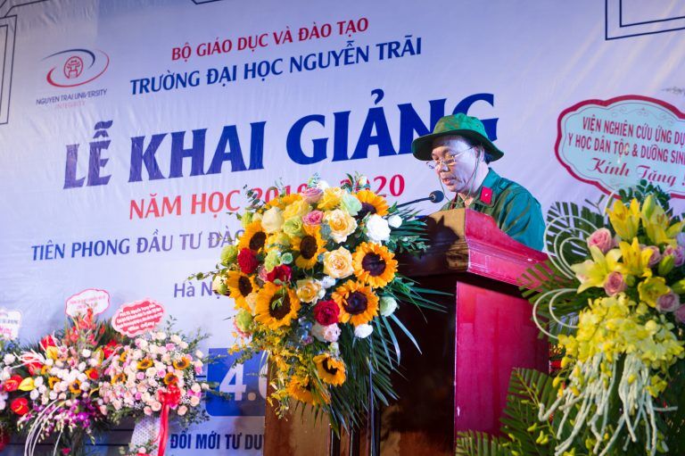 T.S Nguyễn Tiến Luận – Chủ tịch HĐQT, Hiệu trưởng Trường Đại học Nguyễn Trãi phát biểu trong lễ khai giảng năm học 2019-2020