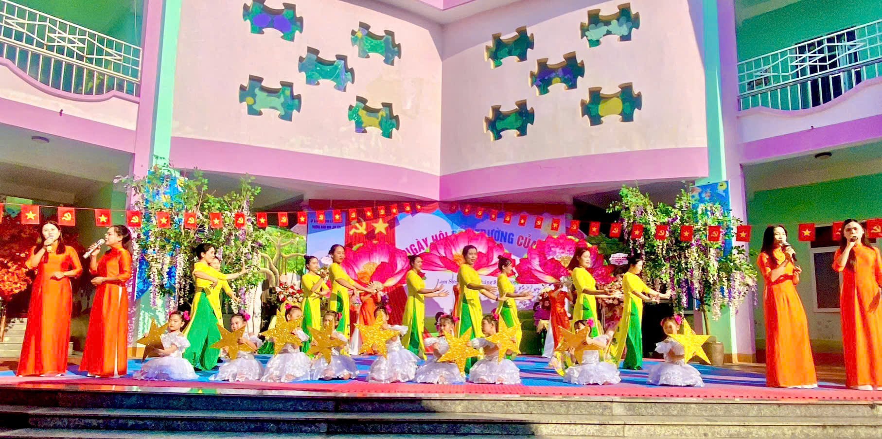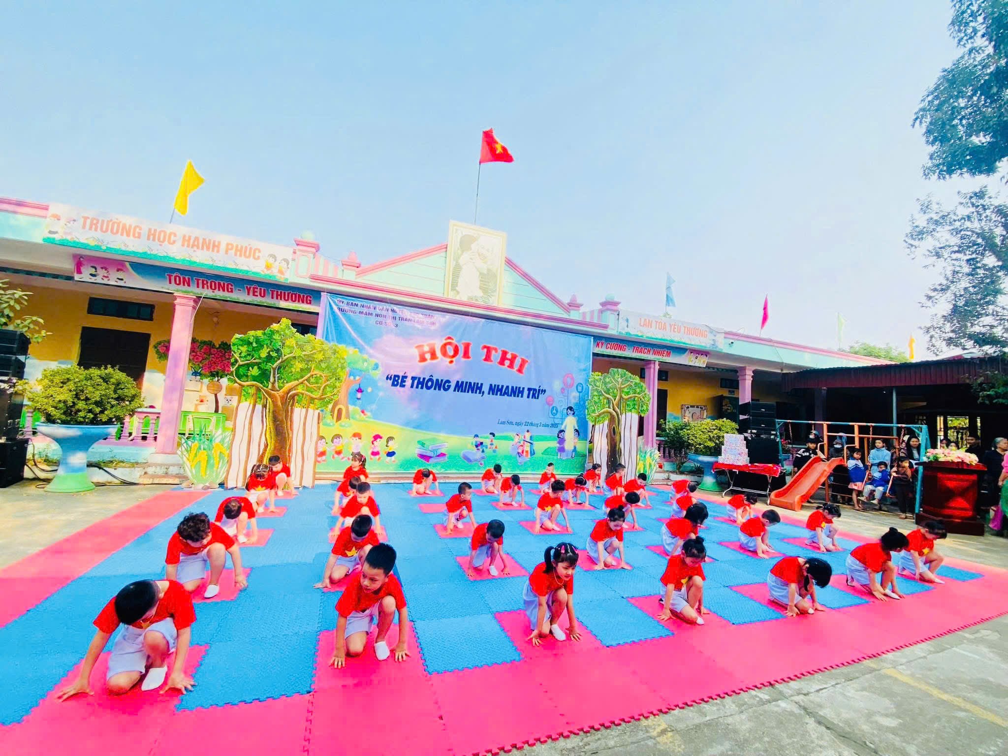Nhận thức được tầm quan trọng của việc xây dựng trường học lấy trẻ làm trung tâm, trường cũng đã làm tốt công tác tham mưu với cấp ủy, chính quyền địa phương tăng cường đầu tư cơ sở vật chất. Đồng thời, tuyên truyền đến phụ huynh học sinh và các tầng lớp Nhân dân nâng cao nhận thức về việc tổ chức các hoạt động chăm sóc, giáo dục trẻ theo quan điểm giáo dục lấy trẻ làm trung tâm. Nhờ sự quan tâm của chính quyền địa phương, sự đồng thuận của các tầng lớp Nhân dân cùng sự nỗ lực của ngành giáo dục, đến nay trường được xây dựng theo hướng chuẩn hóa, đáp ứng nhu cầu nuôi dưỡng, chăm sóc và giáo dục trẻ. Trường học đã cải tạo, nâng cấp khuôn viên sân trường; xây dựng bồn hoa cây cảnh, bổ sung đồ dùng, đồ chơi hàng năm.