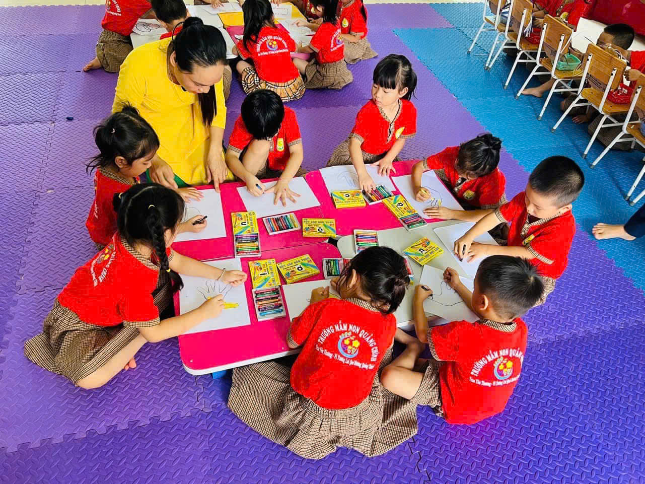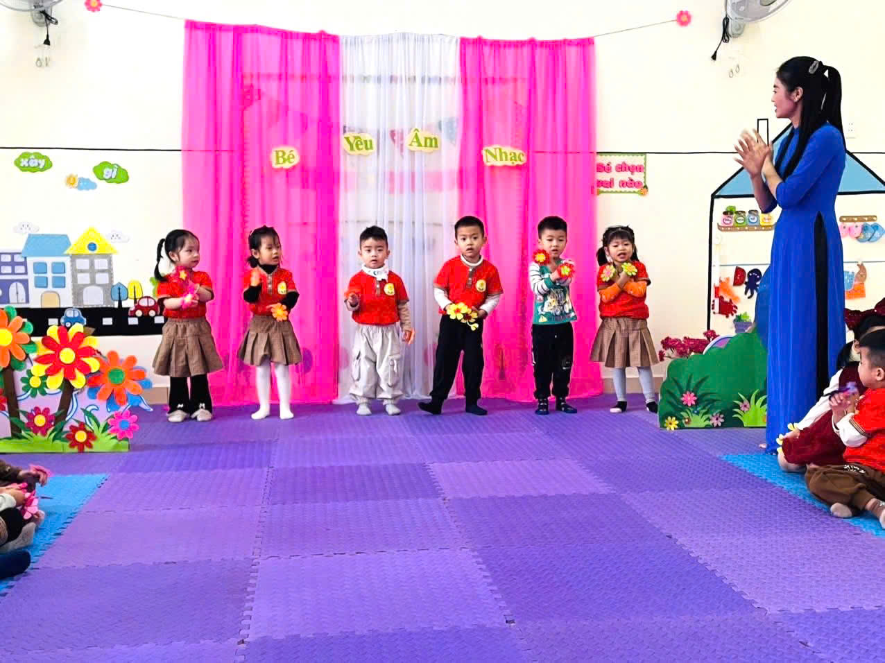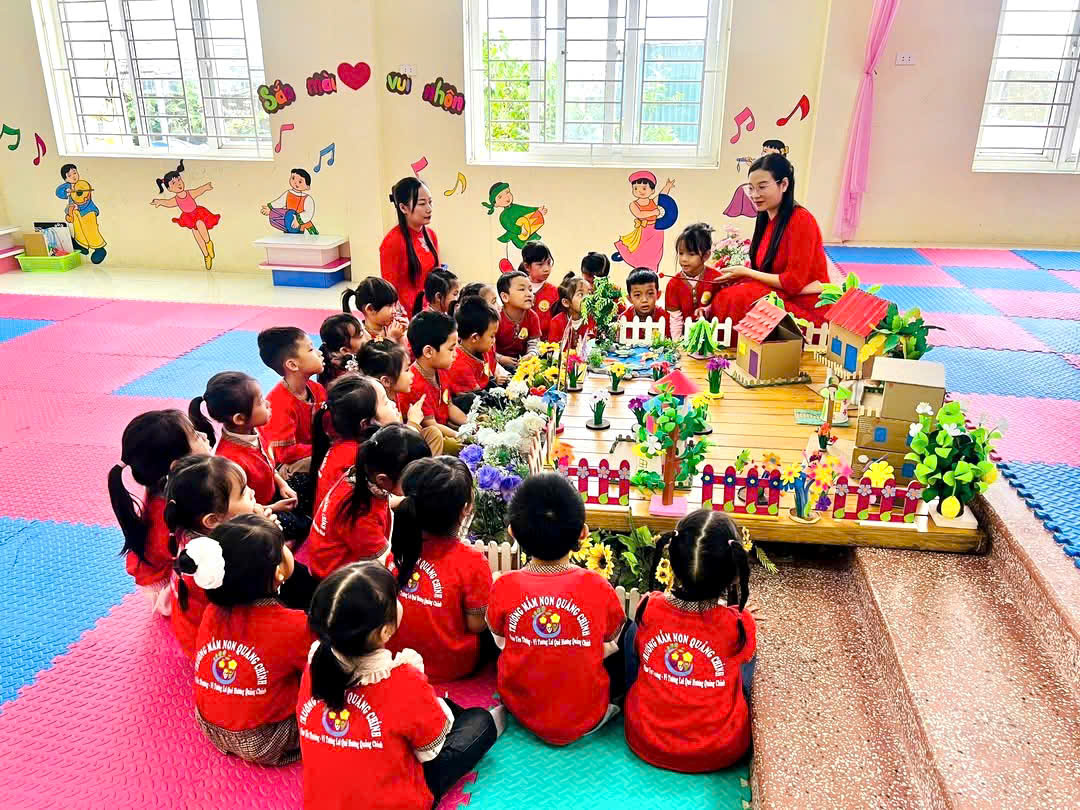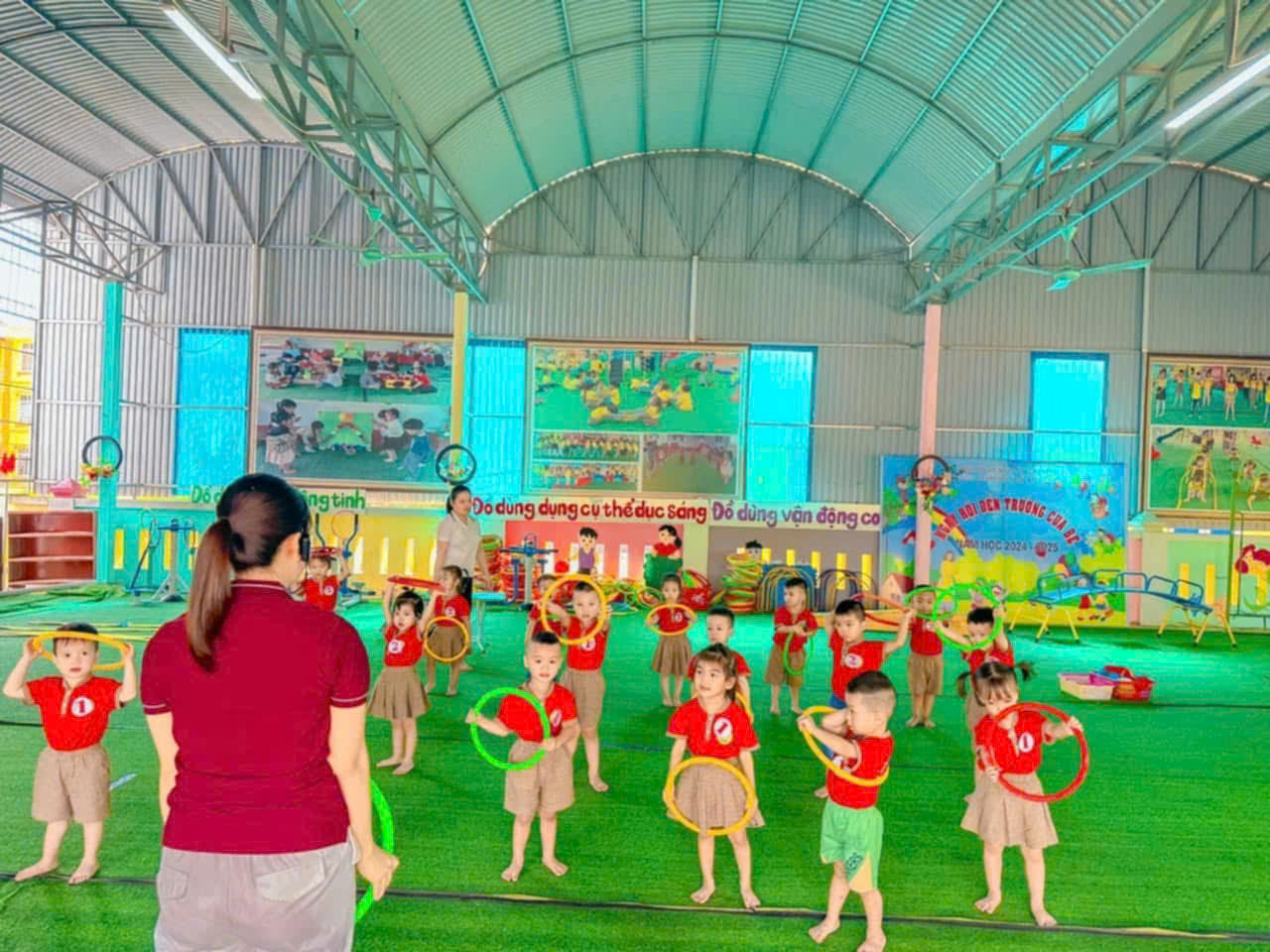 Cùng với đó, các hoạt động giáo dục được đổi mới linh hoạt, phù hợp với điều kiện thực tế của trường, lớp và khả năng của từng trẻ, giúp trẻ chủ động tham gia vui chơi, khám phá và trải nghiệm. Đặc biệt, đối với trẻ 5 tuổi, 100% trẻ đủ điều kiện sẵn sàng vào lớp Một, có sức khỏe tốt, nề nếp sinh hoạt nền nếp, tích cực tham gia các hoạt động học tập và vui chơi. Năm học 2024 – 2025, toàn trường có 363 trẻ (nhà trẻ 42 trẻ, mẫu giáo 321 trẻ). Kết quả đánh giá chất lượng giáo dục cho thấy: nhóm nhà trẻ có 92,8% trẻ đạt yêu cầu; khối mẫu giáo có 98,2% trẻ đạt yêu cầu. Bên cạnh đó, nhà trường thường xuyên tổ chức các ngày hội, ngày lễ như: Ngày hội đến trường, Tết Trung thu, Noel, Chào năm mới 2025… tạo không khí vui tươi, phấn khởi, góp phần nâng cao chất lượng giáo dục toàn diện cho trẻ.
