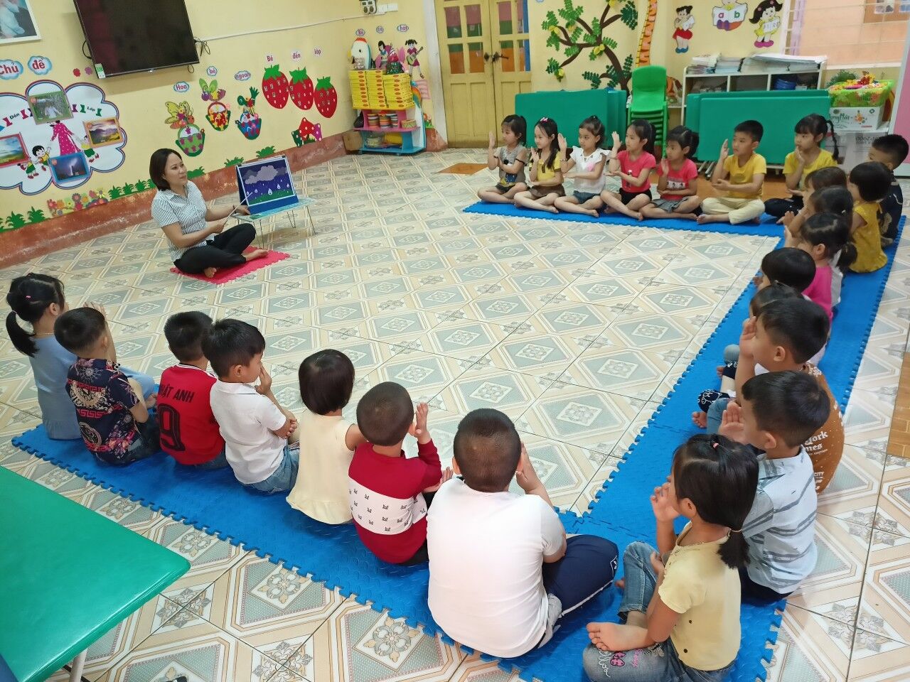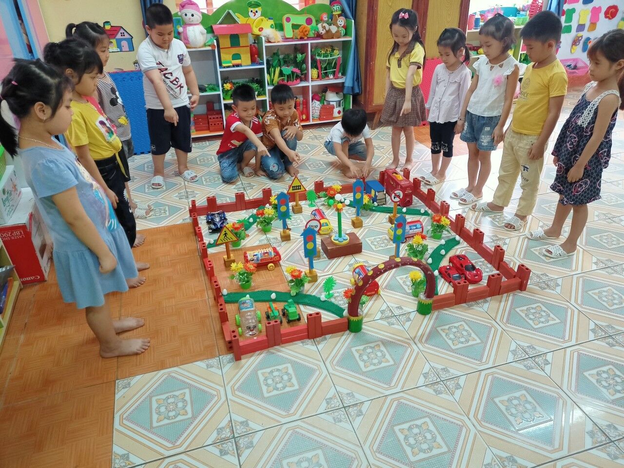 Đối với trẻ, quá trình phát triển là “học mà chơi, chơi mà học”. Trường đã xây dựng môi trường trong lớp và môi trường ngoài lớp học với những đồ chơi vận động phong phú, hấp dẫn nên trẻ có thể tự lựa chọn trò chơi, có thể tự chơi một mình hoặc chơi theo nhóm, chơi tập thể. Qua đó, giúp trẻ tăng cường khả năng vận động, rèn luyện một cơ thể khỏe mạnh, nhanh nhẹn, sức bền và sự dẻo dai khéo léo của các cơ tay, chân và các cơ vận động khác của cơ thể, giúp trẻ phát triển cân đối hài hòa và rèn sự mạnh dạn tự tin đối với trẻ, tăng cường sự tương tác của trẻ. Ngoài ra, trên nền tường các cô giáo đã tạo được những mảng tường trí tuệ hấp dẫn để trẻ khám phá, kích thích tư duy, sang tạo của trẻ. Với nhiều hoạt động phong phú, trẻ được phát triển toàn diện về đức, trí, thể, mỹ và kỹ năng xã hội, hình thành cho trẻ những yếu tố đầu tiên của nhân cách, chuẩn bị cho trẻ em vào lớp một.