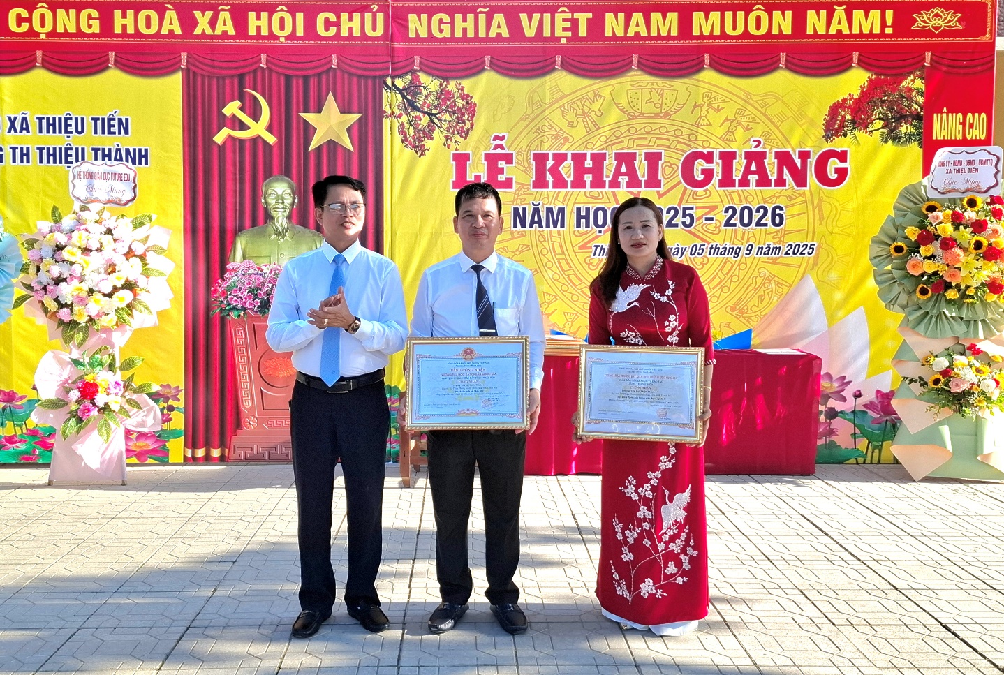 Năm học 2024-2025 cũng là cột mốc đánh dấu chặng đường phát triển vẻ vang của nhà trường; là sự ghi nhận của các cấp lãnh đạo và nhân dân về những nỗ lực của đội ngũ cán bộ, giáo viên của trường; là nguồn cổ vũ động viên lớn lao để thầy và trò tiếp tục phấn đấu trong sự nghiệp trồng người cao quý; quyết tâm xây dựng trường TH Thiệu Thành trở thành một trong những lá cờ đầu của ngành Giáo dục và Đào tạo xã Thiệu Tiến.