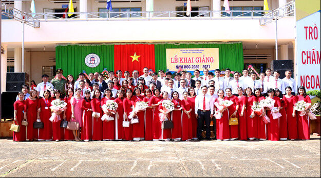 Tập thể Hội đồng sư phạm nhà trường và Đại biểu chụp hình lưu niệm trong Lễ khai giảng năm học 2020 – 2021.