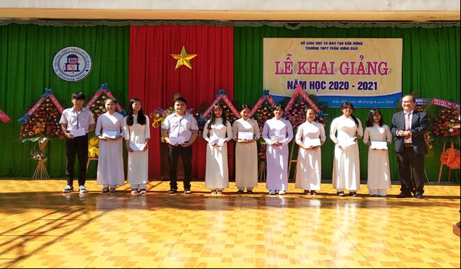 Học sinh nhận học bổng trong Lễ khai giảng năm học 2020 – 2021.
