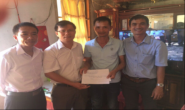 Lãnh đạo nhà trường và Ban đại diện Cha mẹ học sinh thăm và trao tặng tiền ủng hộ cho học sinh mắc bệnh hiểm nghèo năm học 2017-2018.