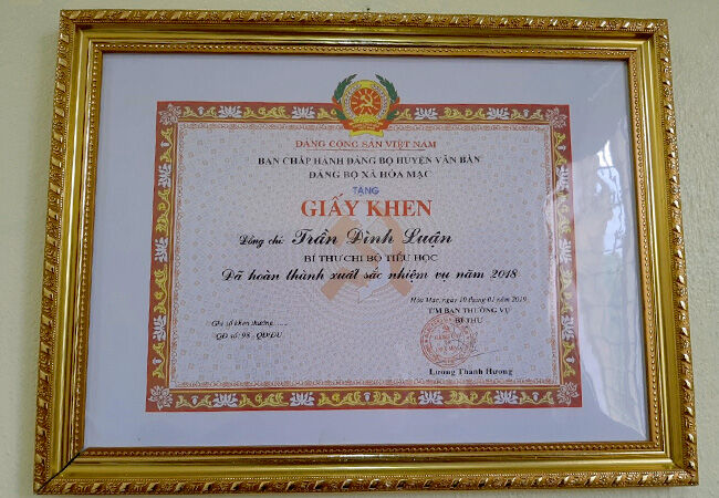 Hiệu trưởng nhà trường đã được nhận giấy khen trong năm học 2018