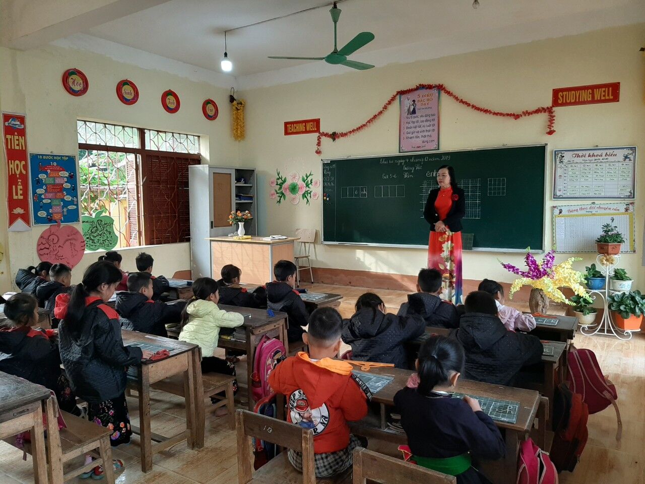 Sự ân cần của giáo viên dành cho mỗi em học sinh.