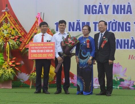 Tiến sĩ Lê Xuân Thảo – Lê Bích Thắng, hậu duệ của nhà giáo Lê Xuân Lan trao tặng tiền để hỗ trợ xây dựng cải tạo cơ sở vật chất nhà trường nhân dịp 10 năm nhà trường đổi tên