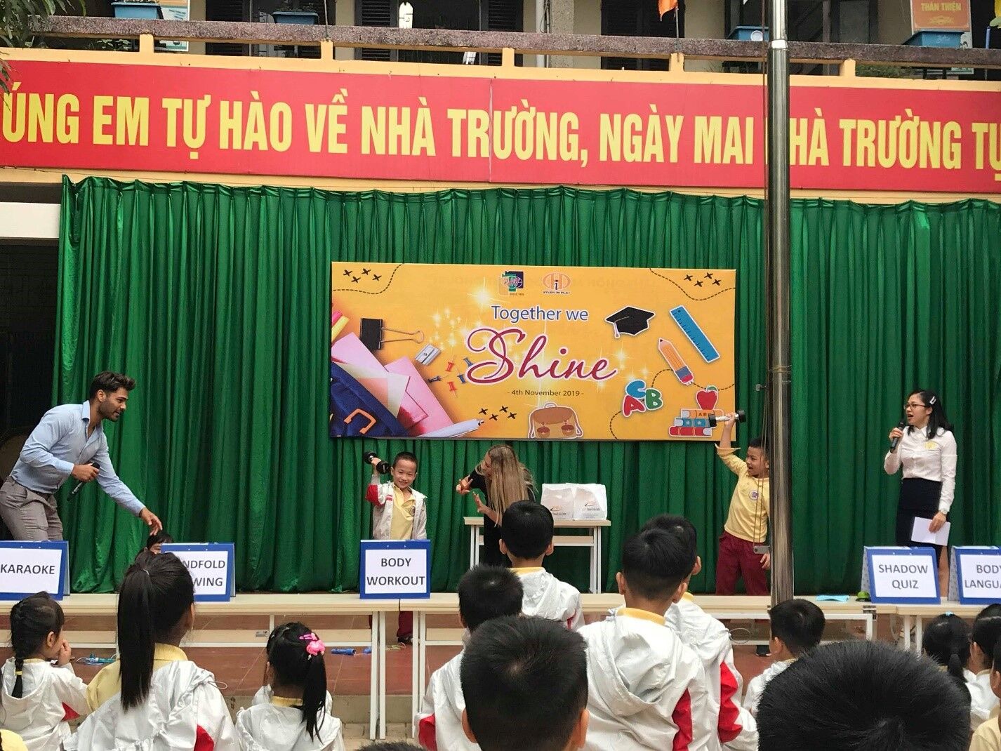 Các em học sinh hào hứng tham gia giao lưu tại chương trình Together we shine
