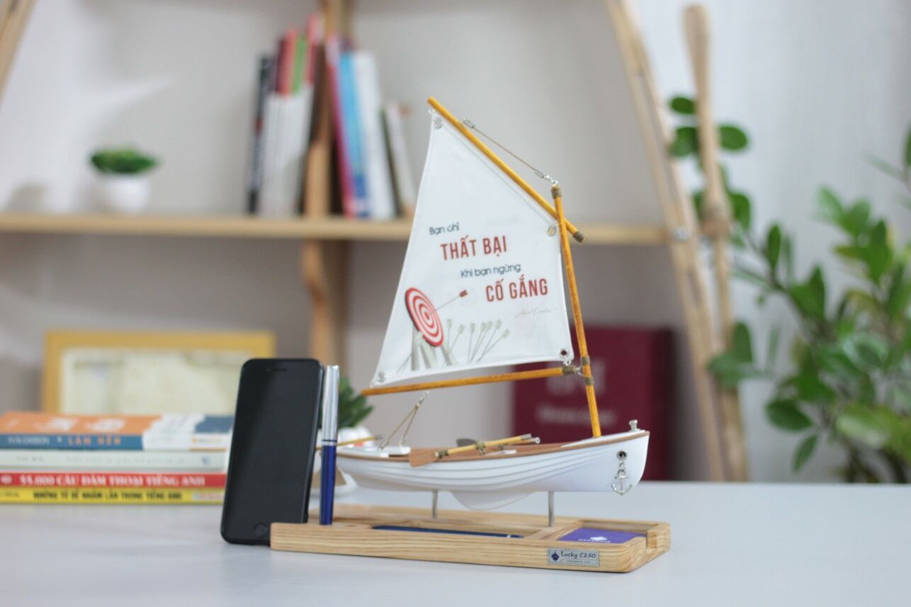 Với thiết kế tiên phong, tiện dụng có thể để bút, name card, điện thoại không chỉ giúp không gian bàn làm việc gòn gàng mà còn truyền cảm hứng qua những câu nói tạo động lực trên cánh buồm.
