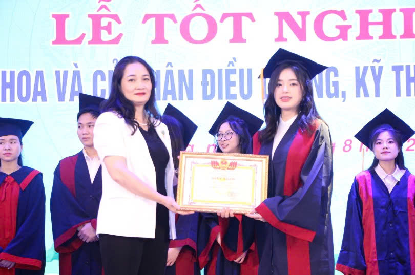 TTƯT.PGS.TS.BS Đinh Thị Diệu Hằng – Bí thư Đảng ủy, Chủ tịch Hội đồng Trường trao Giấy khen cho sinh viên tốt nghiệp đạt thành tích cao trong học tập (2024)