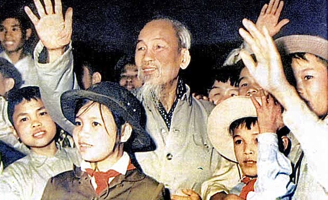 Chủ tịch Hồ Chí Minh với các cháu thiếu niên nhi đồng. Ảnh: TL