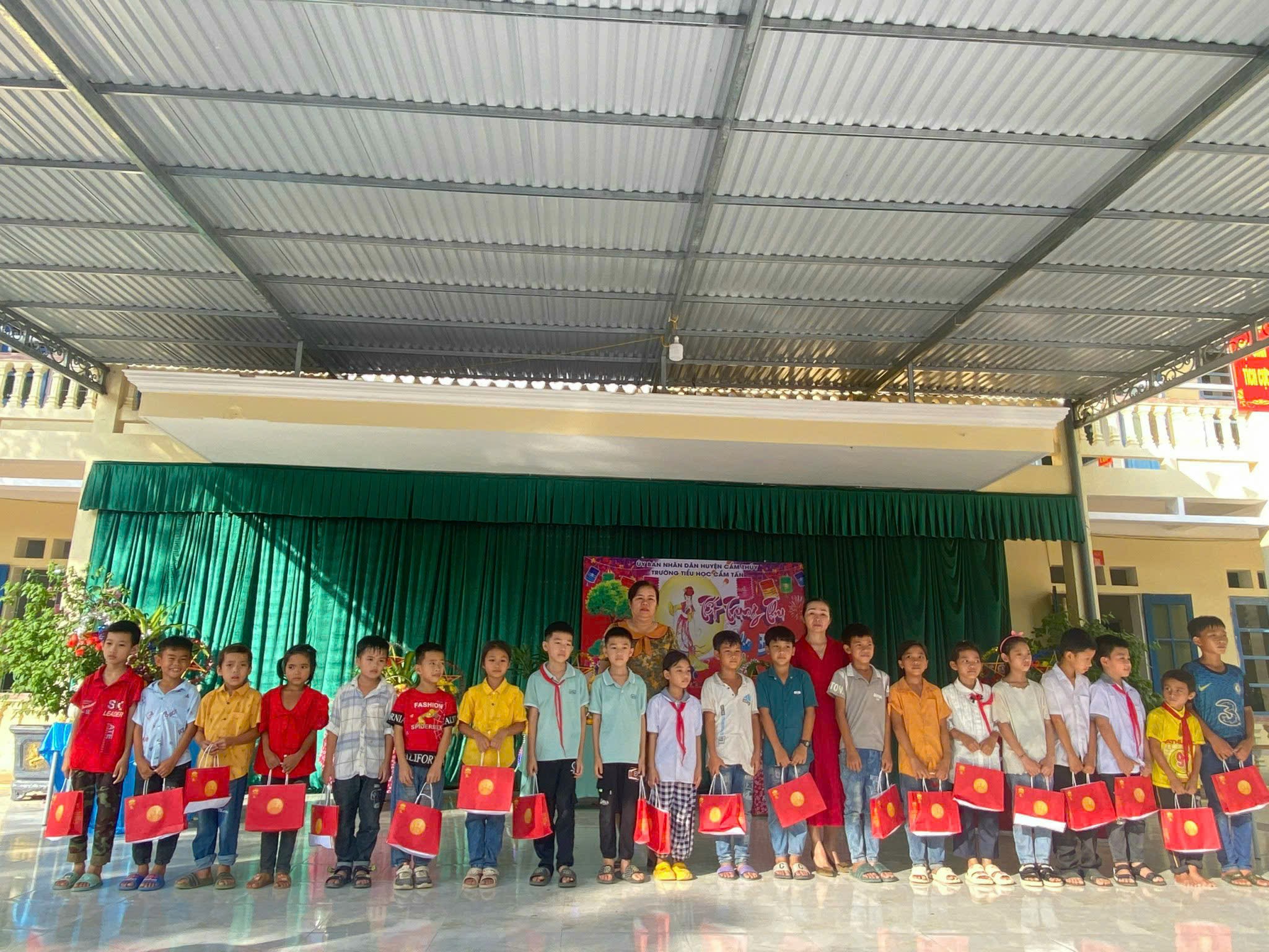 Ban giám hiệu nhà trường trao quà cho các em trong dịp tết trung thu