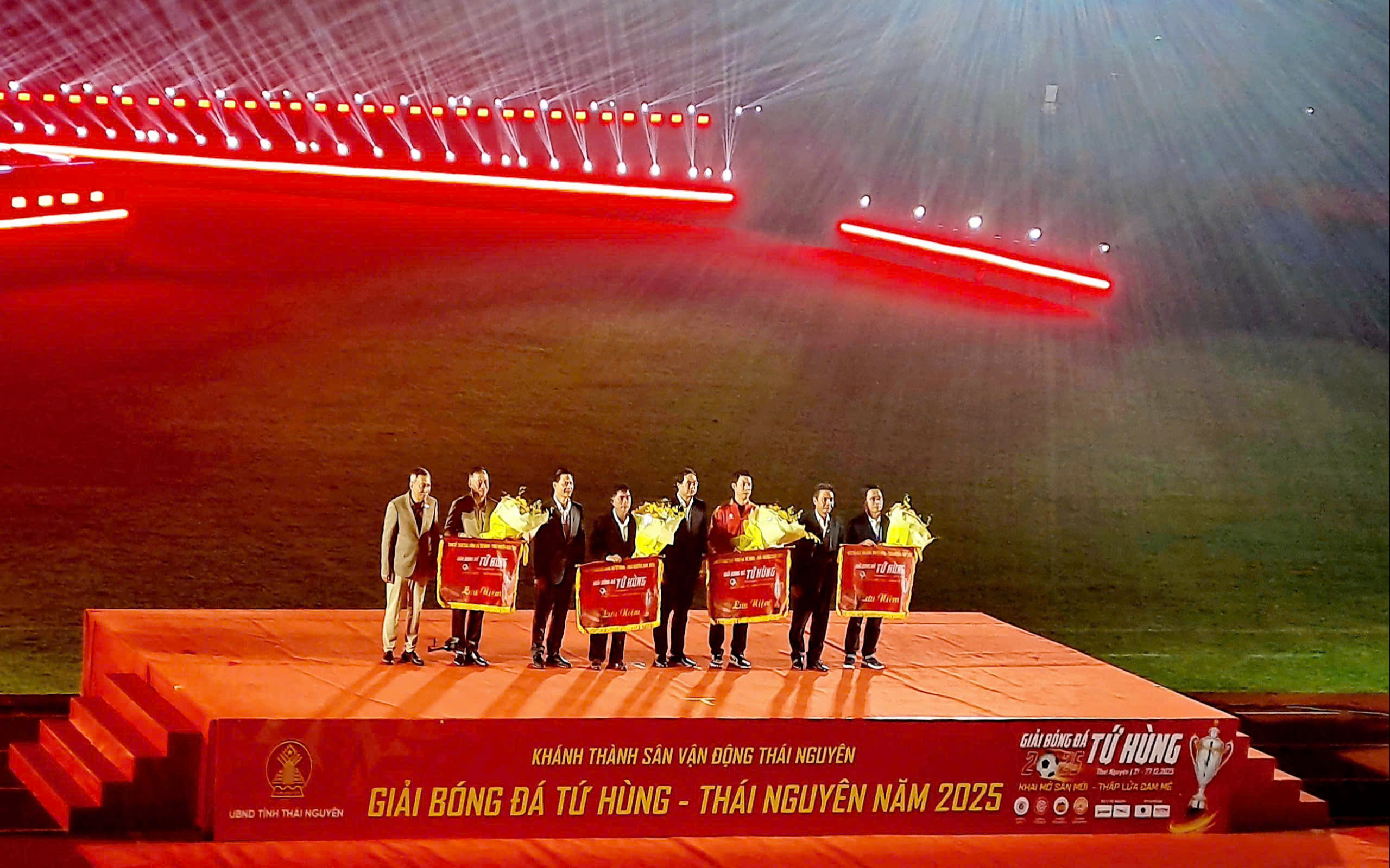 Ngay sau lễ khánh thành sân vận động, Giải bóng đá Tứ hùng Thái Nguyên năm 2025 được chính thức khai mạc với hai cặp đấu hấp dẫn: Hà Nội FC gặp Hoàng Anh Gia Lai; Thể Công Viettel gặp PVF Công an nhân dân.