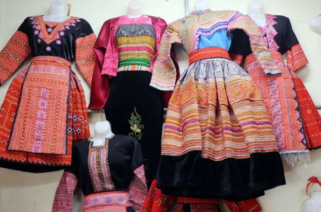 Hồi ấy, cách ngã ba lối rẽ từ QL6 vào Thị trấn Nông trường Mộc Châu khoảng 50m (nay là khu vực cổng Khách sạn Mường Thanh Mộc Châu Luxury), tôi đã bắt gặp một gian hàng “Bán và giới thiệu sản phẩm các trang phục dân tộc”, tuy nhỏ xinh thôi nhưng tôi nhận thấy ở đó trưng bày đủ thứ với thiên đường bản sắc. Cứ mải mê ngắm hoài những chiếc túi xách xinh xắn, những chiếc mũ gắn cườm điệu đà, những chiếc váy thêu tay đan xen nhiều hình kỷ hà tinh xảo uốn lượn kết hợp với khối màu sắc tạo độ chuyển như khuông nhạc, những chiếc khèn cong vút được xếp lớp bởi nhiều thân nứa nhỏ giật cấp thấp cao, những dây đeo trang sức chạm bạc lấp lánh…, tôi lỡ quên không chào cô chủ nhỏ đang diện chiếc váy H’mông thật hợp với khuôn người.