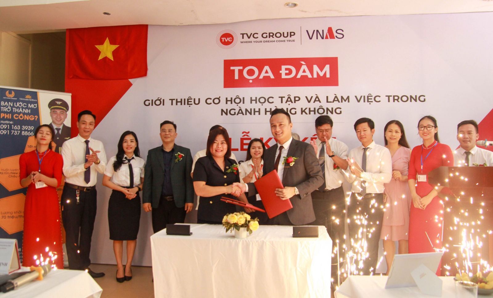 Nhận thấy thị trường gặp nhiều khó khăn, giấc mơ lập nghiệp của nhiều người lao động còn dang dở, TVC Group đã bắt tay cùng Công ty cổ phần Đào tạo Huấn luyện Nghiệp vụ Hàng không Việt Nam VNAS để lấn sân sang ngành hàng không, nhằm giúp giải quyết các vấn đề việc làm trong nước cũng như phần nào giải quyết bài toán kinh tế của người lao động trong giai đoạn này. Sự hợp tác này đã đem lại cơ hội cho các bạn trẻ Việt Nam “khát việc làm”, cất cánh cho những ước mơ đến với tương lai tốt đẹp hơn.