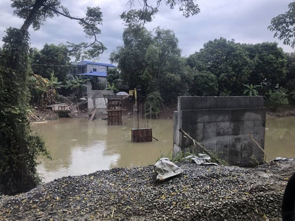 Các trụ cầu bắc qua sông Ngoại Độ trên địa bàn thôn Phú Dư (xã Hồng Quang, Ứng Hòa, Hà Nội) thời điểm mới thi công (Ảnh do người dân cung cấp)