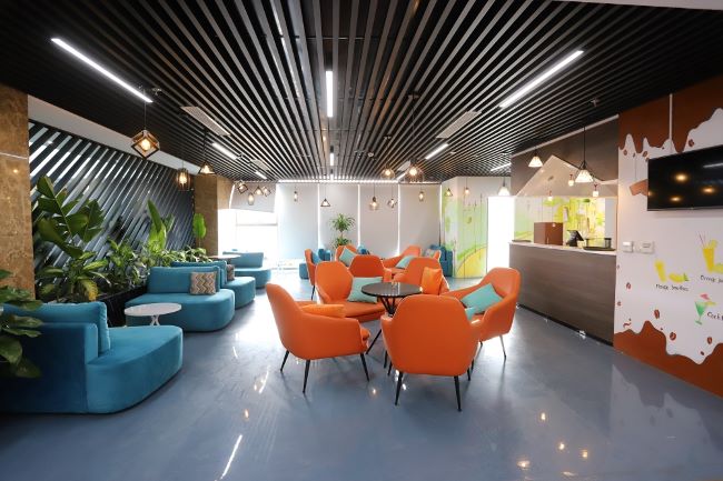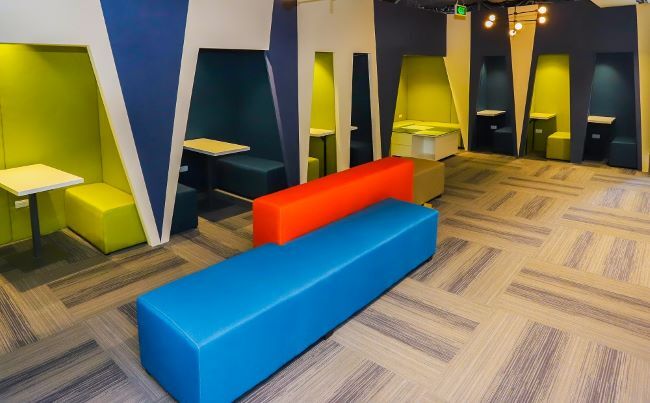 Một góc không gian mở đầy màu sắc phục vụ cho việc họp nhóm