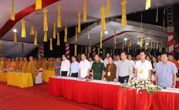 Chủ tịch UBTW MTTQ Việt Nam Trần Thanh Mẫn và các đại biểu dự Lễ cầu siêu, tưởng niệm các Anh hùng liệt sĩ tại Nghĩa trang liệt sĩ quốc tế Việt - Lào (18/7/2020)