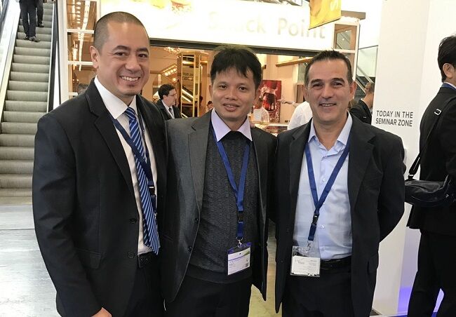 Doanh nhân Lê Bá Sơn (giữa) – Giám đốc Công ty TNHH TMDV Sơn Tiến cùng các đối tác tại nước ngoài