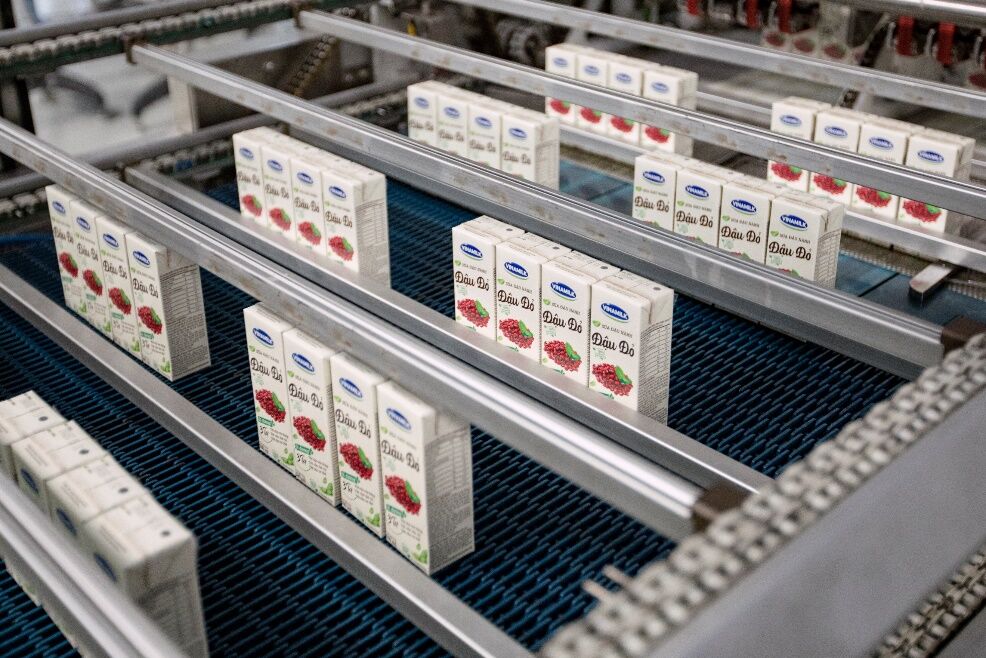 Dây chuyền sản xuất sản phẩm sữa đậu nành hạt trong nước và xuất khẩu tại nhà máy hiện đại của Vinamilk.