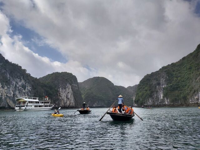 Du khách thích thú trải nghiệm tham quan Vịnh Hạ Long (Quảng Ninh).