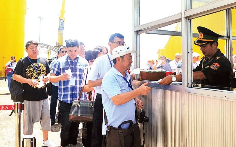 Khách du lịch tàu biển làm thủ tục nhập cảnh tại cảng Tiên Sa, Ðà Nẵng.