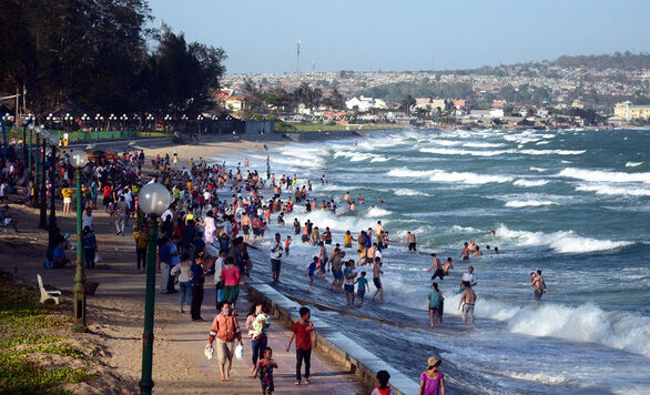 Các hoạt động kinh doanh, du lịch dần khôi phục. Hình ảnh du khách tắm tại bãi biển Đồi Dương, TP Phan Thiết, Bình Thuận vào chiều 30/4 - Ảnh: Internet