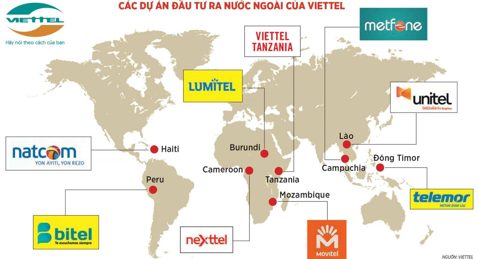 Các dự án đầu tư lớn của Viettel tại nhiều quốc gia (Ảnh minh họa: Intermet)