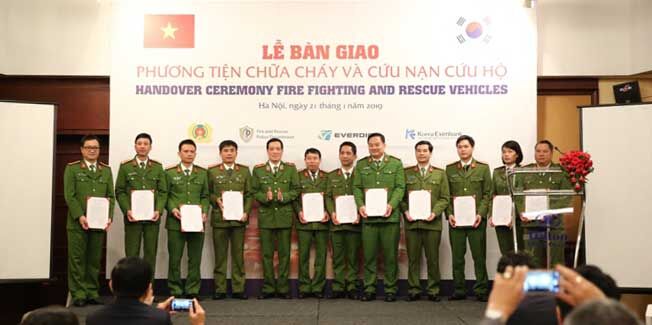 Mới đây, Cục Cảnh sát PCCC và CNCH (Bộ Công an) đã phối hợp với Tập đoàn Everdigm Hàn Quốc tổ chức Lễ bàn giao phương tiện chữa cháy và CNCH của Dự án "Đầu tư trang bị phương tiện và nâng cao năng lực cho lực lượng Cảnh sát PCCC và CNCH Việt Nam".