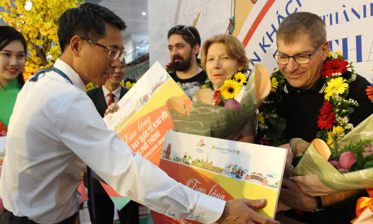 Lễ đón khách quốc tế đầu tiên được tổ chức tại nhiều tỉnh, thành phố du lịch trong cả nước sáng 1/1/2020. Tại sân bay Tân Sơn Nhất, những vị khách "xông đất" TP HCM xuất phát từ Nhật Bản và Pháp, hạ cánh lần lượt lúc 5h50 và 7h10. Trong lễ đón, ngoài những phần quà từ ngành du lịch, các khách may mắn còn được tặng vé bay khứ hồi của hãng hàng không.